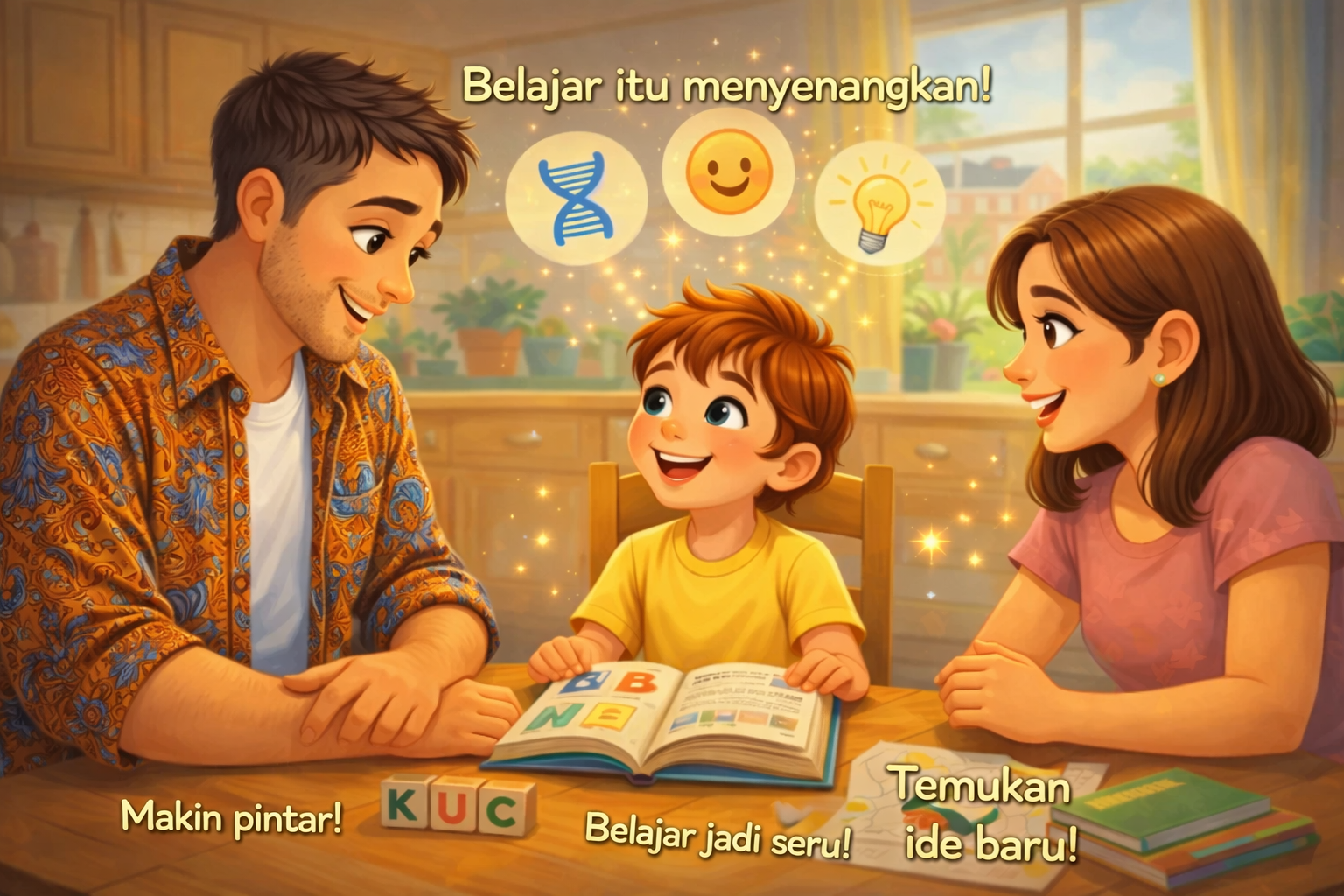 Momen kebersamaan yang penuh sukacita—di mana percakapan sederhana membantu membangun otak, kepercayaan diri, dan ikatan emosional anak (Klik pada gambar untuk mendapatkan produk terkait)