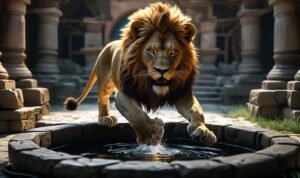 Enraged, he let out a deafening roar, but the “other lion” roared back just as loudly. Furious, the lion jumped into the well to attack his rival, only to realize too late that he had been tricked. He struggled in the water but eventually drowned.